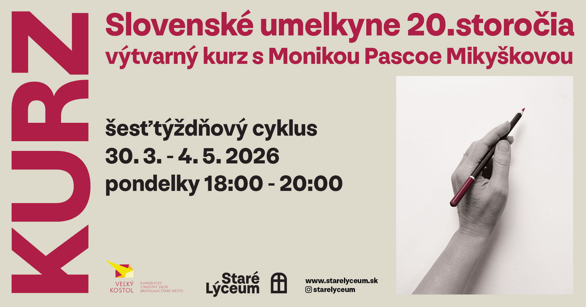 V krátkom teoretickom úvode predstavíme výrazné ženské osobnosti slovenského výtvarného umenia a priblížime ich tvorbu v historickom kontexte. Ich diela sa následne stanú inšpiráciou pre praktickú časť workshopu, počas ktorej si pod vedením výtvarníčky Moniky Pascoe Mikyškovej vyskúšate vlastné tvorivé postupy.
